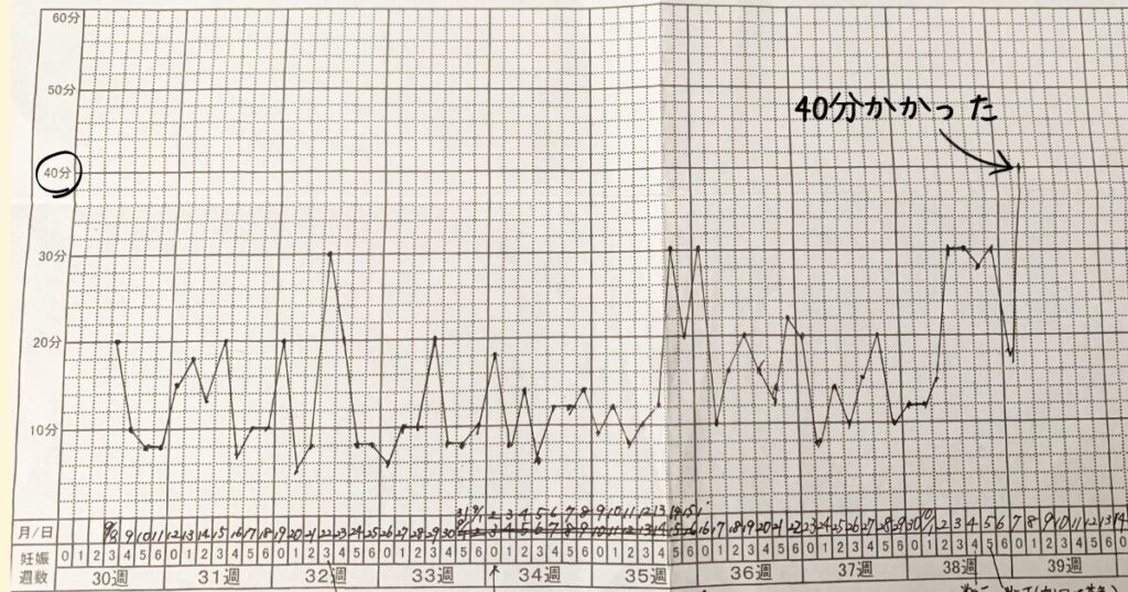 出産前日は40分かかりました。