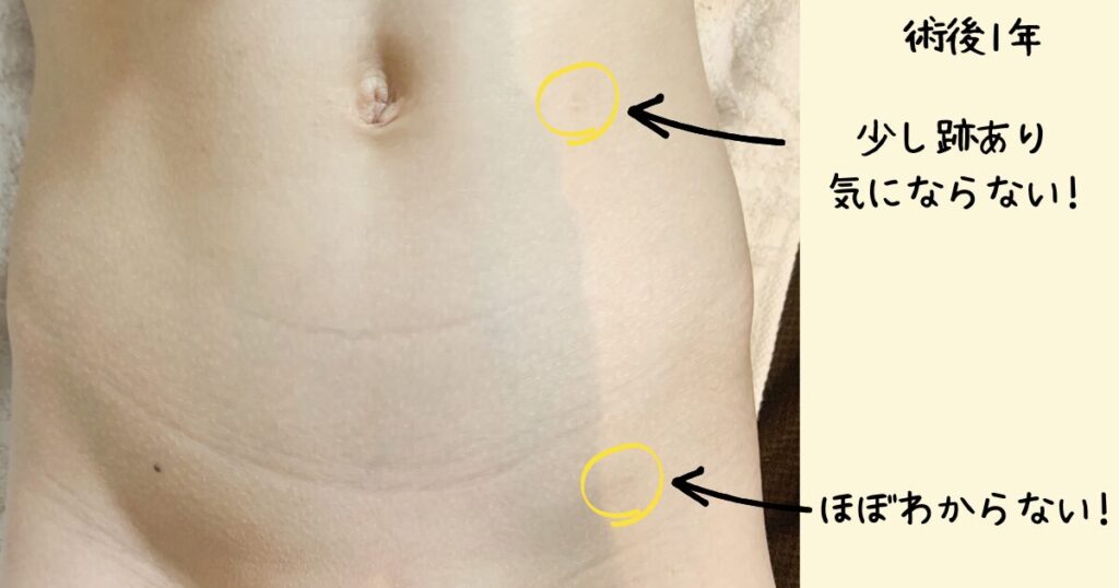 腹腔鏡(ふくくうきょう)手術の場合は、傷が小さく